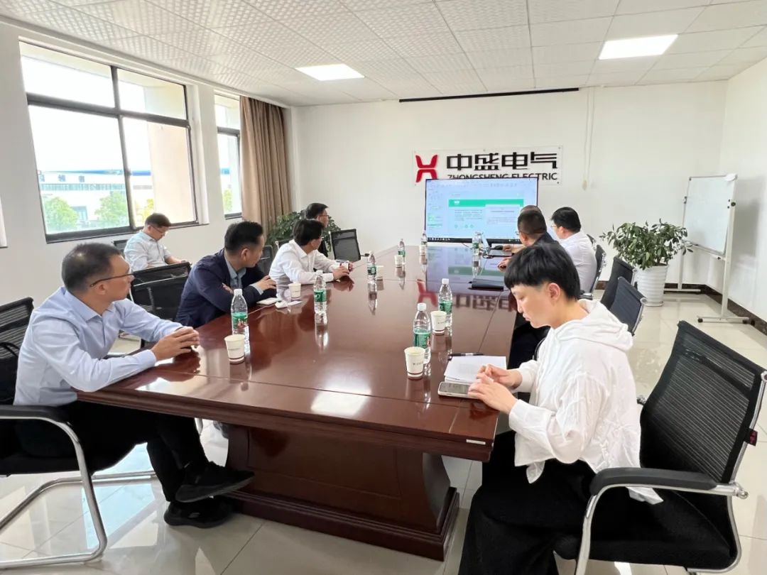 调研组一行领导在公司董事长谢远伟的陪同下,深入一线生产车间,实地了解中盛电气的生产情况。随后双方进行了交流座谈。